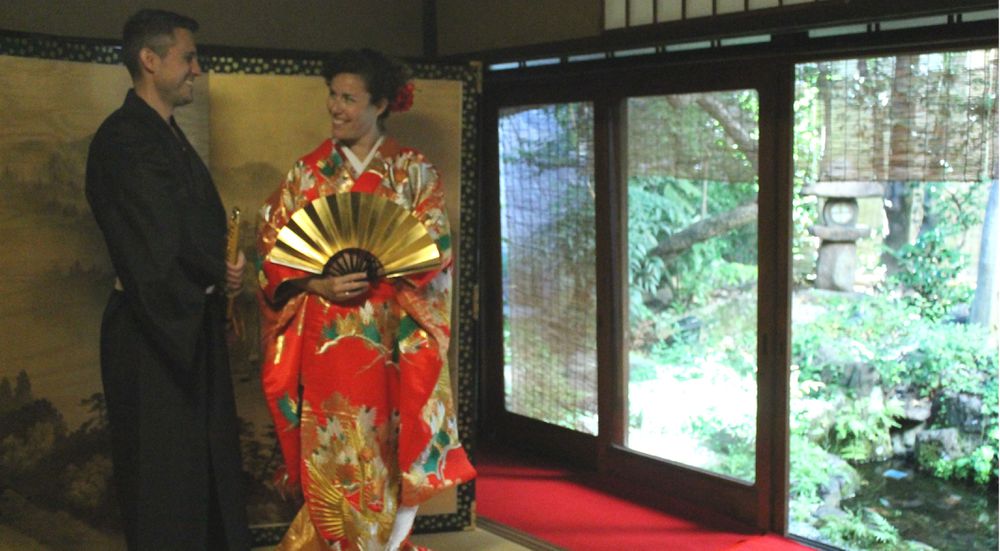 For guests who reserve our set plan customer (tea ceremony and sake tasting or tea ceremony and Kimono), we provide free service of taking photo with wedding kimono put on you and taking photogenic pictures. We are excited to assist you in celebrating your Honeymoon or anniversary, couples, ladies.